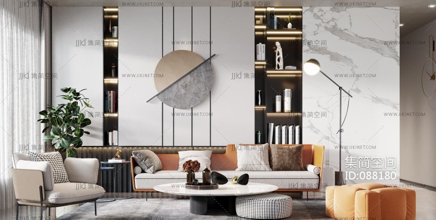 现代客厅,沙发单人沙发茶几 3d模型下载 [模型ID:88180]