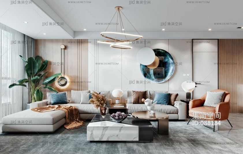 09现代轻奢客厅,转角沙发椅子 3d模型下载 [模型ID:88184]