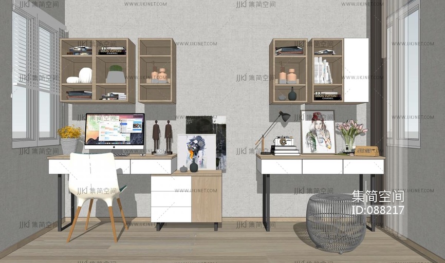 书桌书柜组合2020 su草图模型下载 [模型ID:88217]