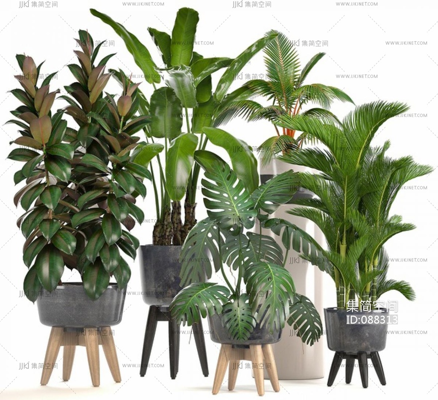 11现代室内盆栽植物,花盆,散尾葵,芭蕉叶 3d模型下载 [模型ID:88313]