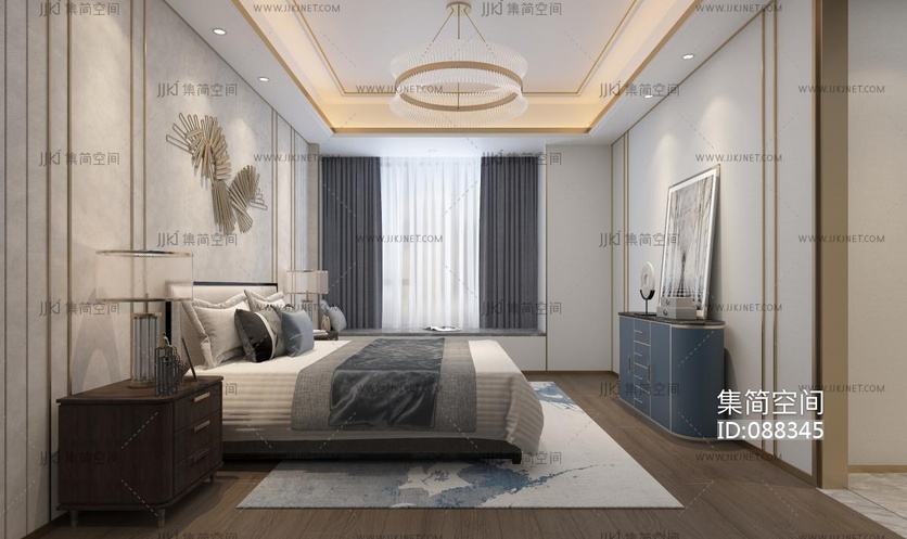 简欧式样板房一卧室 3d模型下载 [模型ID:88345]