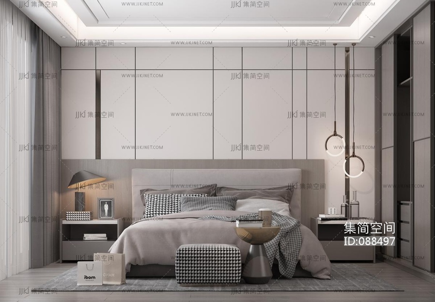 30现代卧室双人床床头柜, 3d模型下载 [模型ID:88497]