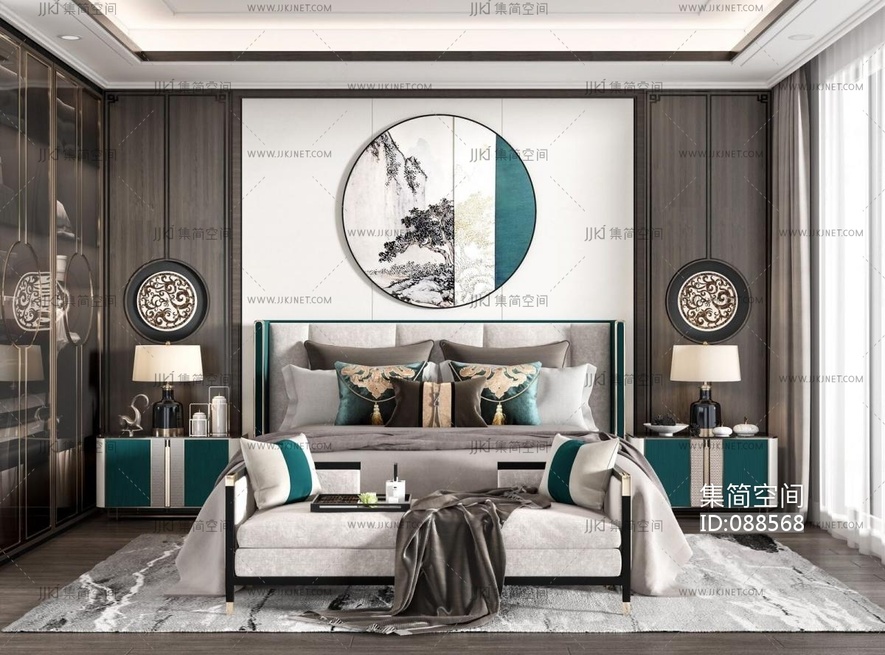 新中式样板间卧室 3d模型下载 [模型ID:88568]