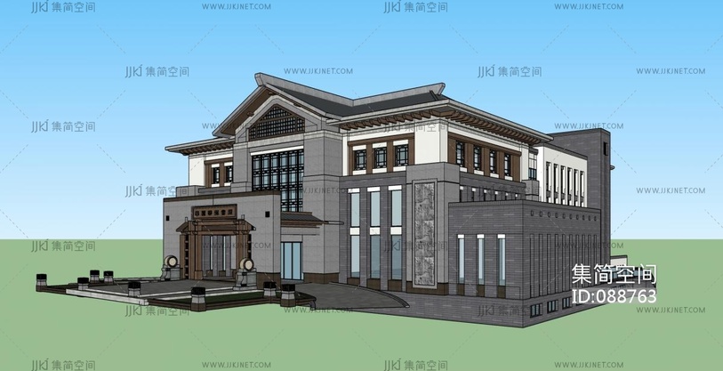 03新中式别墅会所门头入口 su草图模型下载 [模型ID:88763]