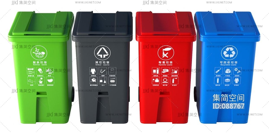 18现代分类垃圾桶塑料箱3D模型 3d模型下载 [模型ID:88767]