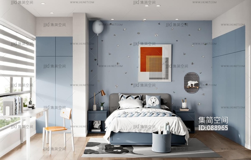 现代男孩房,儿童房,卧室CR 3d模型下载 [模型ID:88965]