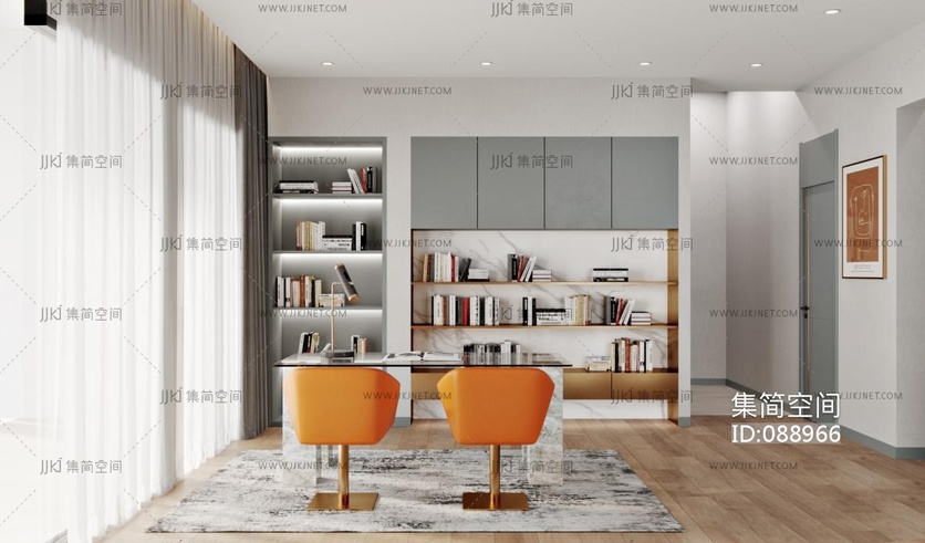 现代轻奢书房 3d模型下载 [模型ID:88966]