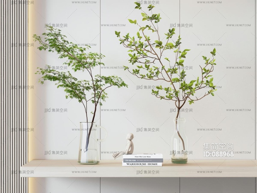 青瓷花盆中的树枝花束,植物插画3D模型cr3d模型下载