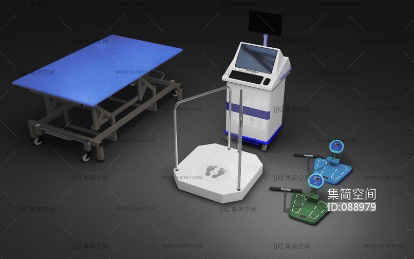 现代医疗设备,人体秤,蓝色医用床,医疗设备器材 3d模型下载 [模型ID:88979]