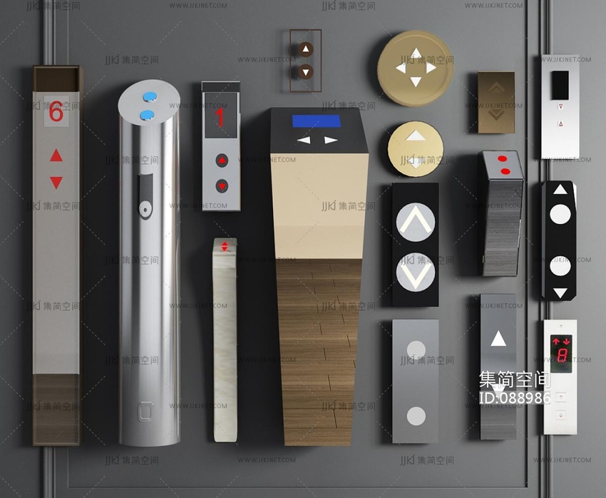 现代金属,不锈钢电梯开关,按钮 3d模型下载 [模型ID:88986]