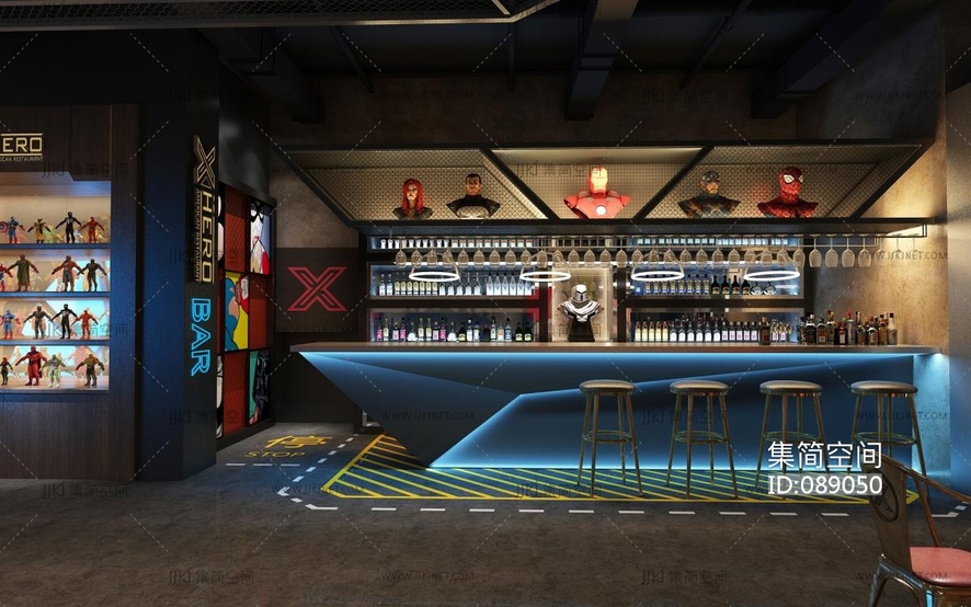 工业LOFT酒吧,酒吧台,接待台 3d模型下载 [模型ID:89050]
