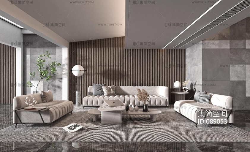 现代客厅,沙发,茶几 3d模型下载 [模型ID:89053]