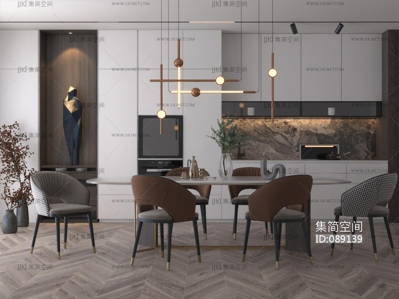 现代餐厅,餐桌椅 3d模型下载 [模型ID:89139]