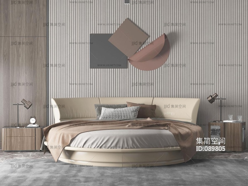 现代布艺圆形床 3d模型下载 [模型ID:89805]