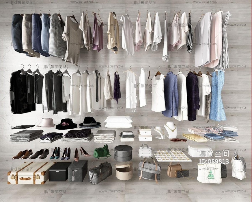 现代衣帽间衣服饰品 3d模型下载 [模型ID:89813]
