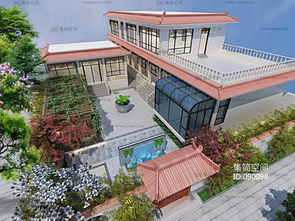 新中式别墅 3d模型下载 [模型ID:90098]