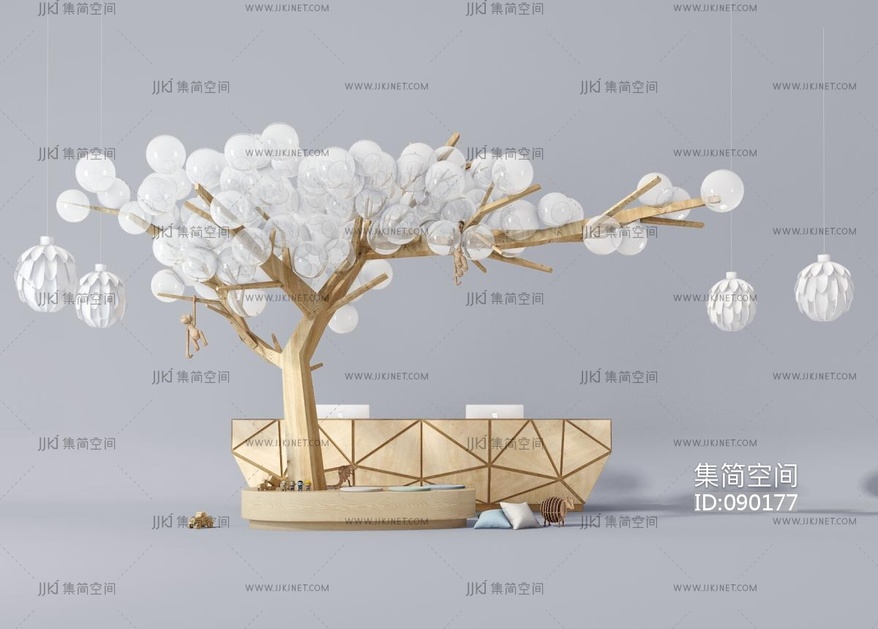 北欧现代树形儿童区接待台服务台,树造型 3d模型下载 [模型ID:90177]