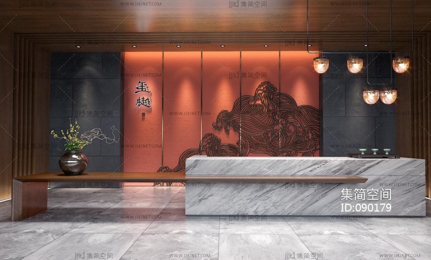 新中式酒店会所服务台 3d模型下载 [模型ID:90179]