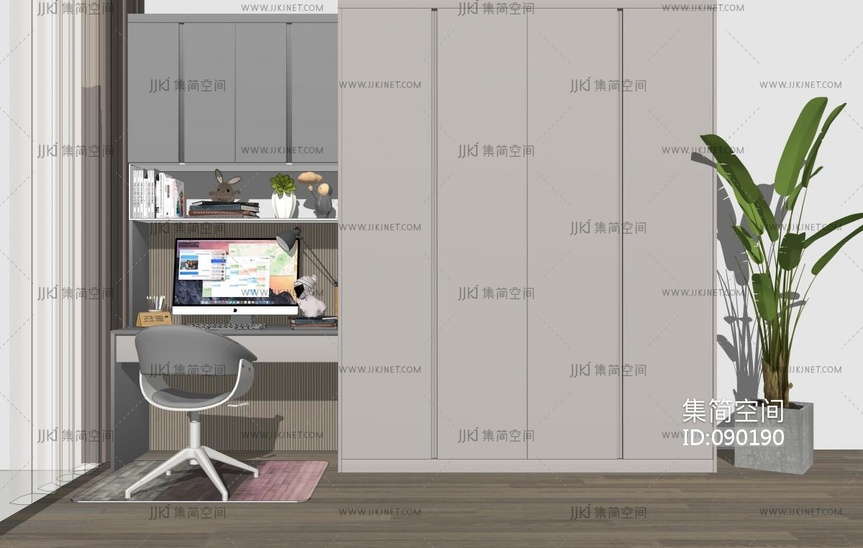 北欧平开门衣柜书桌椅组合SU模型 su草图模型下载 [模型ID:90190]