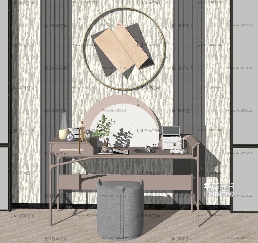 现代轻奢梳妆台背景墙 su草图模型下载 [模型ID:90297]