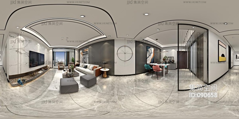 新中式客餐厅全景 3d模型下载 [模型ID:90658]