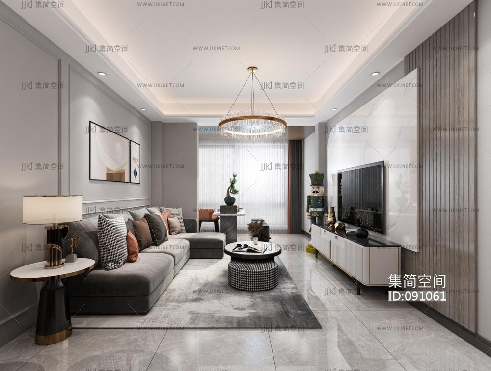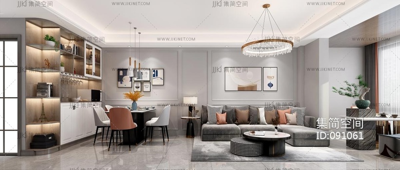 02现代简欧式客餐厅,装饰挂画,盆景 3d模型下载 [模型ID:91061]