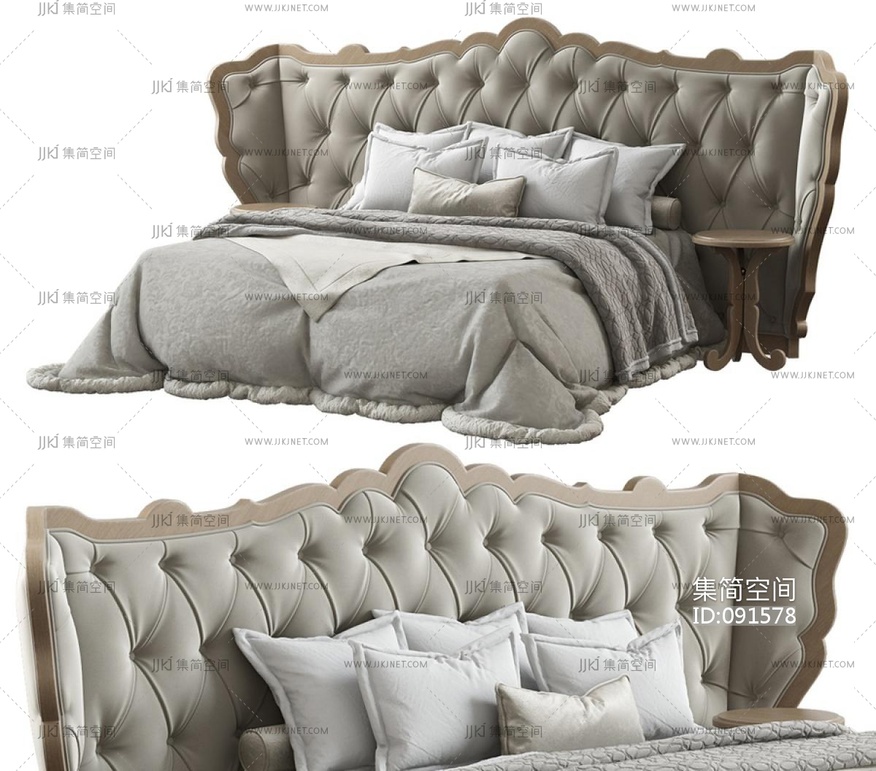 5欧式法式巴洛克古典雕花双人床圆形床头柜3d模型3d模型下载