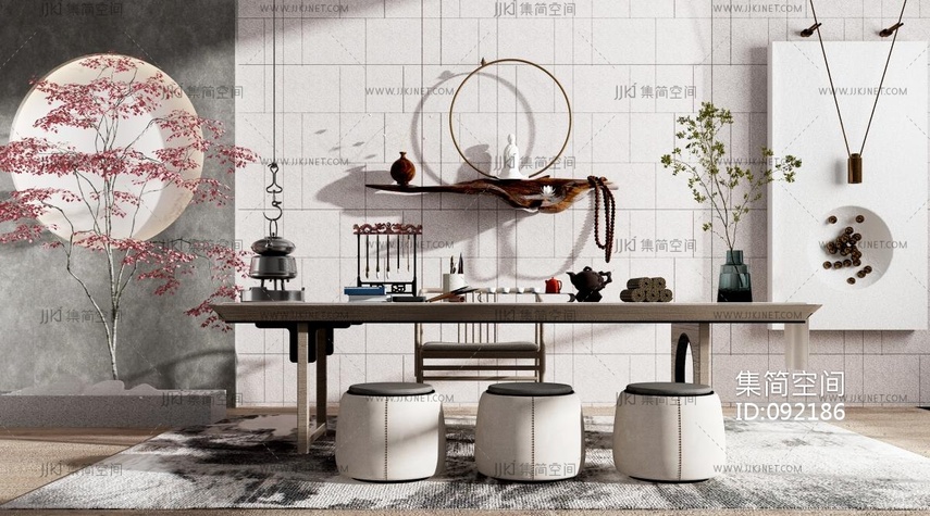 新中式书桌椅 3d模型下载 [模型ID:92186]