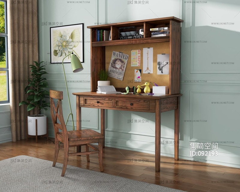 美式实木书桌 3d模型下载 [模型ID:92193]
