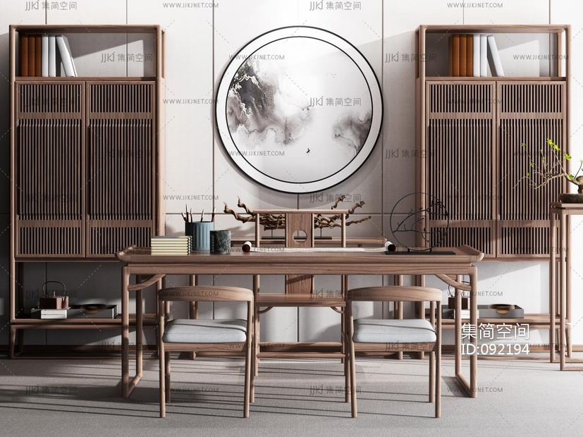 新中式简易书桌椅 3d模型下载 [模型ID:92194]