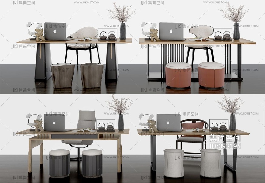 新中式实木书桌椅 3d模型下载 [模型ID:92195]
