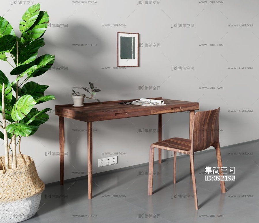 现代原木书桌椅 3d模型下载 [模型ID:92198]