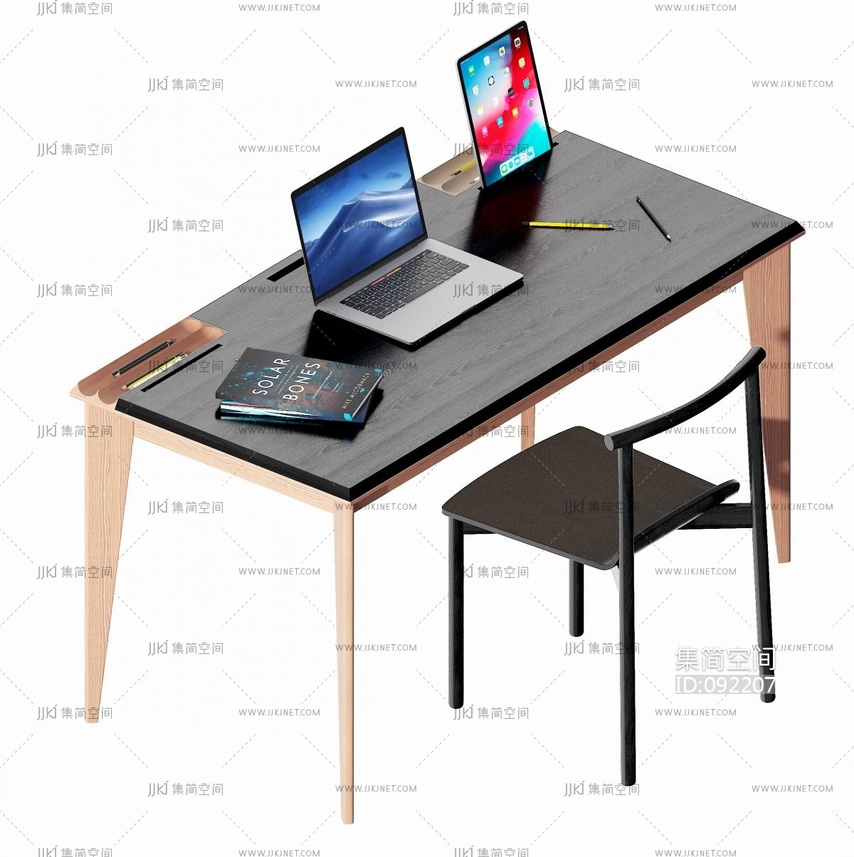 现代简易书桌椅, 3d模型下载 [模型ID:92207]