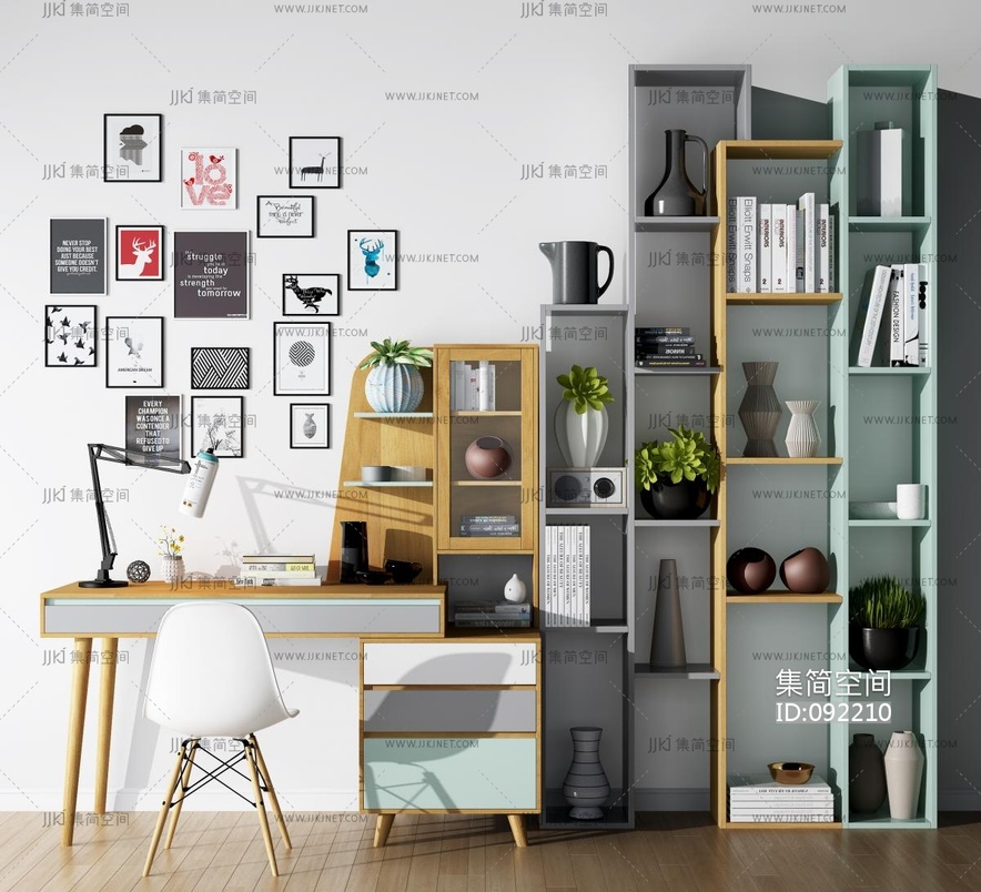 北欧一体式书桌椅 3d模型下载 [模型ID:92210]