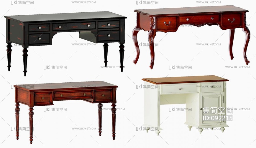 美式欧式实木书桌 3d模型下载 [模型ID:92215]