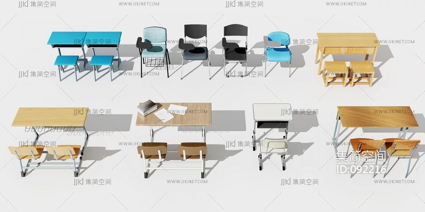 现代学生课桌椅 3d模型下载 [模型ID:92216]