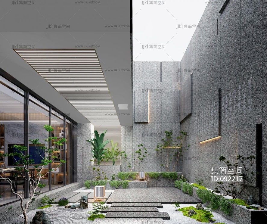 现代别墅景观天井 3d模型下载 [模型ID:92217]