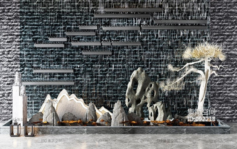 新中式景观小品水景 3d模型下载 [模型ID:92218]