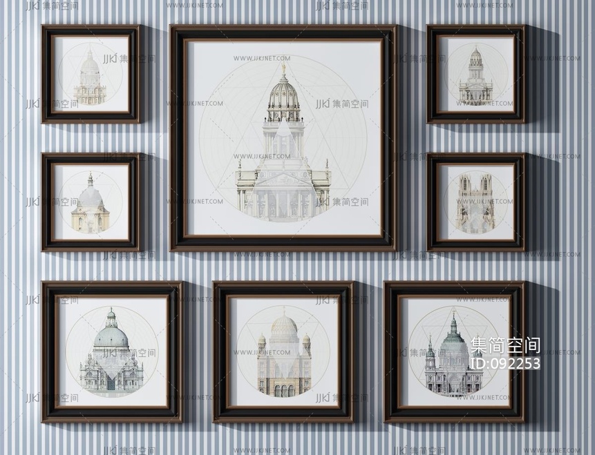 欧式美式建筑装饰画 3d模型下载 [模型ID:92253]