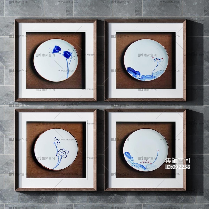新中式碟画装饰画 3d模型下载 [模型ID:92258]