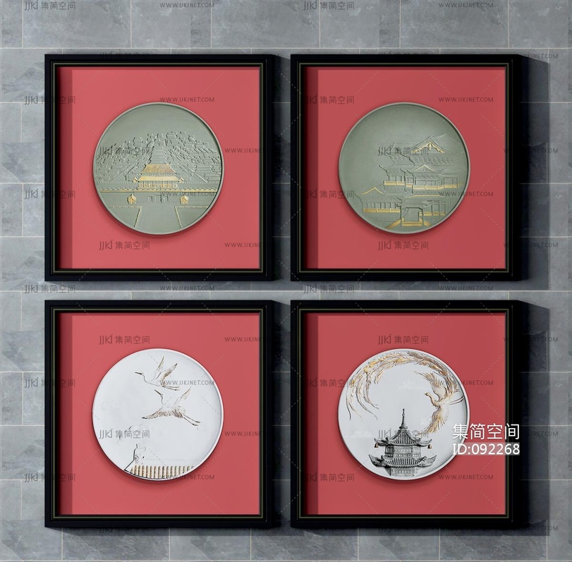 新中式飞鸟建筑装饰画挂画 3d模型下载 [模型ID:92268]