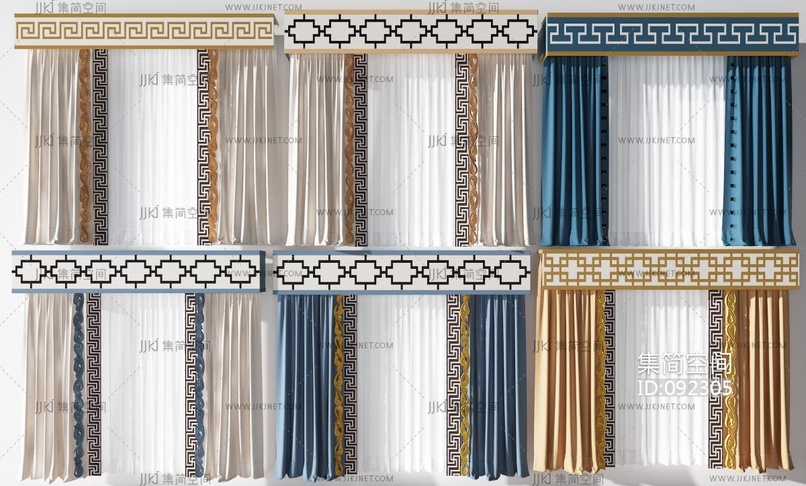 新中式布艺窗帘 3d模型下载 [模型ID:92305]