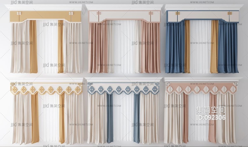 新中式布艺窗帘 3d模型下载 [模型ID:92306]