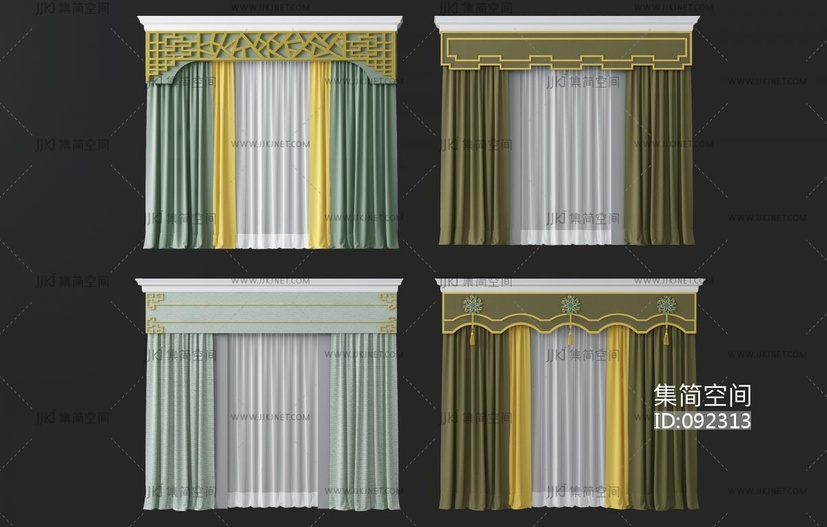 新中式欧式,儿童布艺窗帘 3d模型下载 [模型ID:92313]