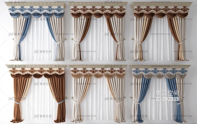 欧式法式布艺窗帘 3d模型下载 [模型ID:92315]