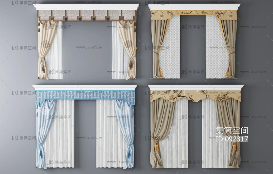新中式欧式布艺窗帘 3d模型下载 [模型ID:92317]