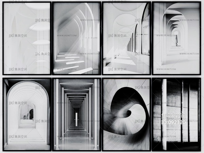 现代黑白挂画 3d模型下载 [模型ID:92320]