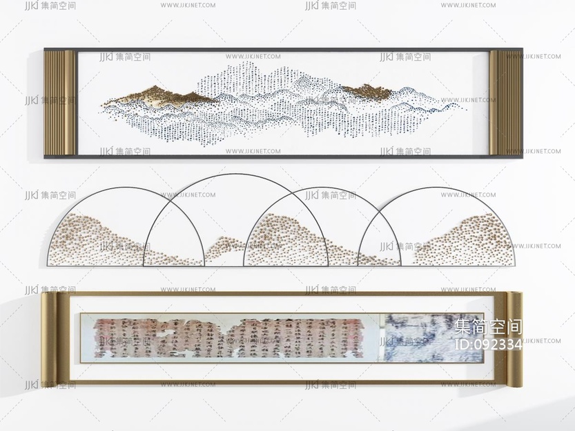 新中式山水书法字画挂画 3d模型下载 [模型ID:92334]