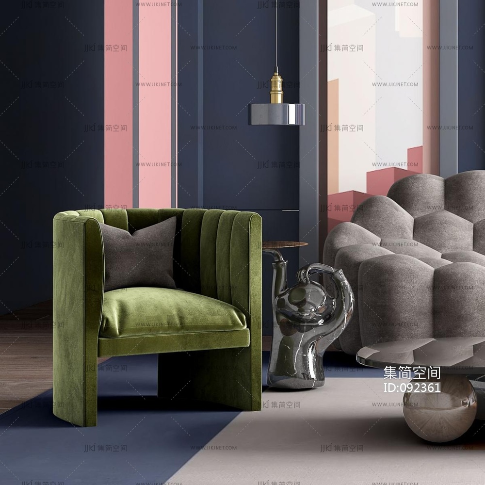 中古风客厅 沙发茶几组合 背景墙3d模型下载