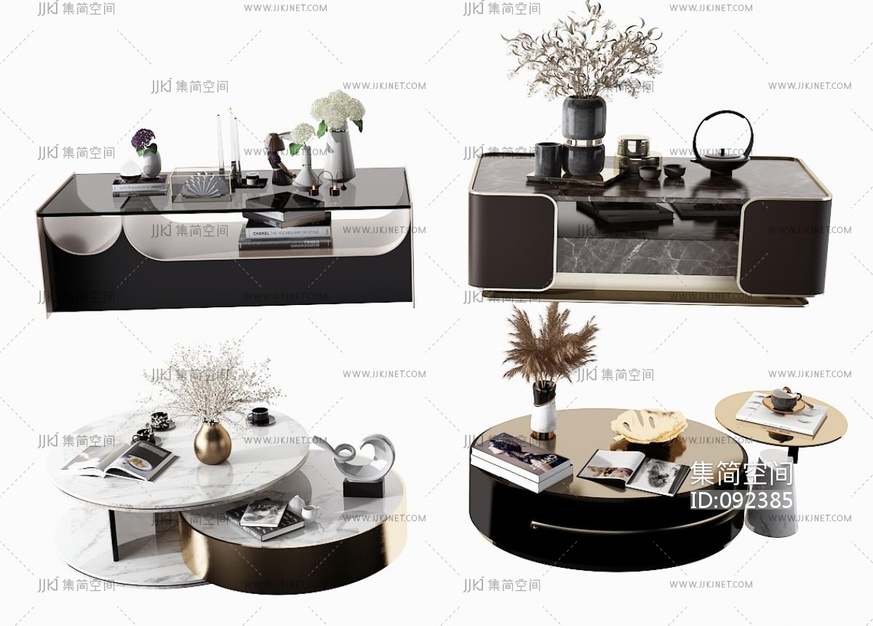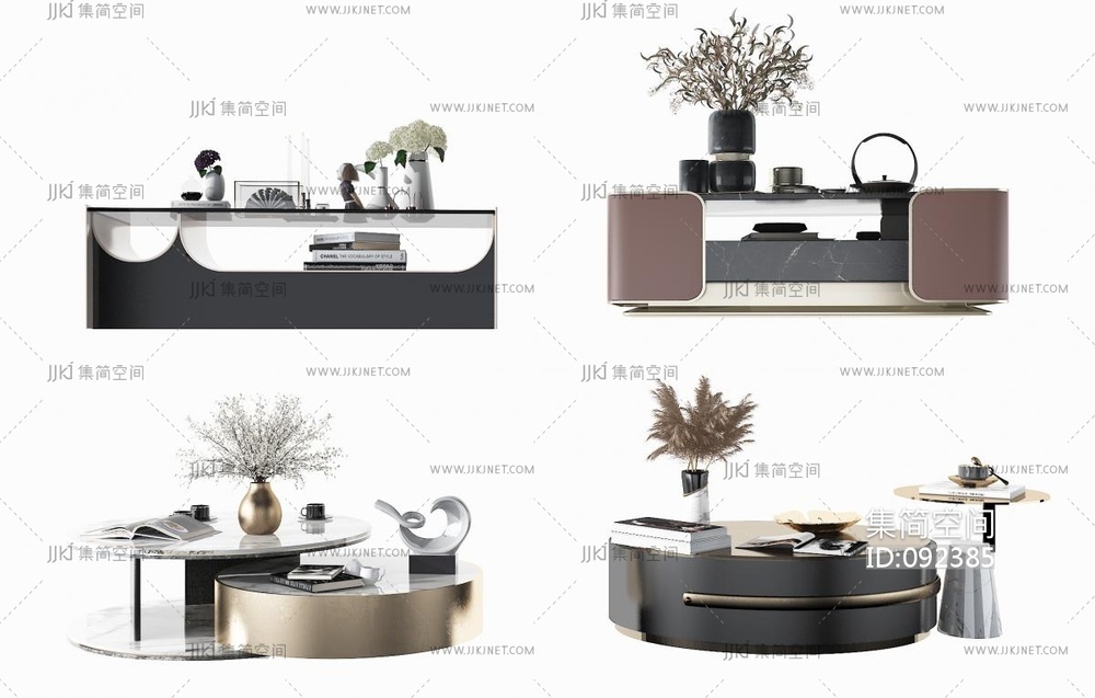 现代圆形茶几组合 3d模型下载 [模型ID:92385]